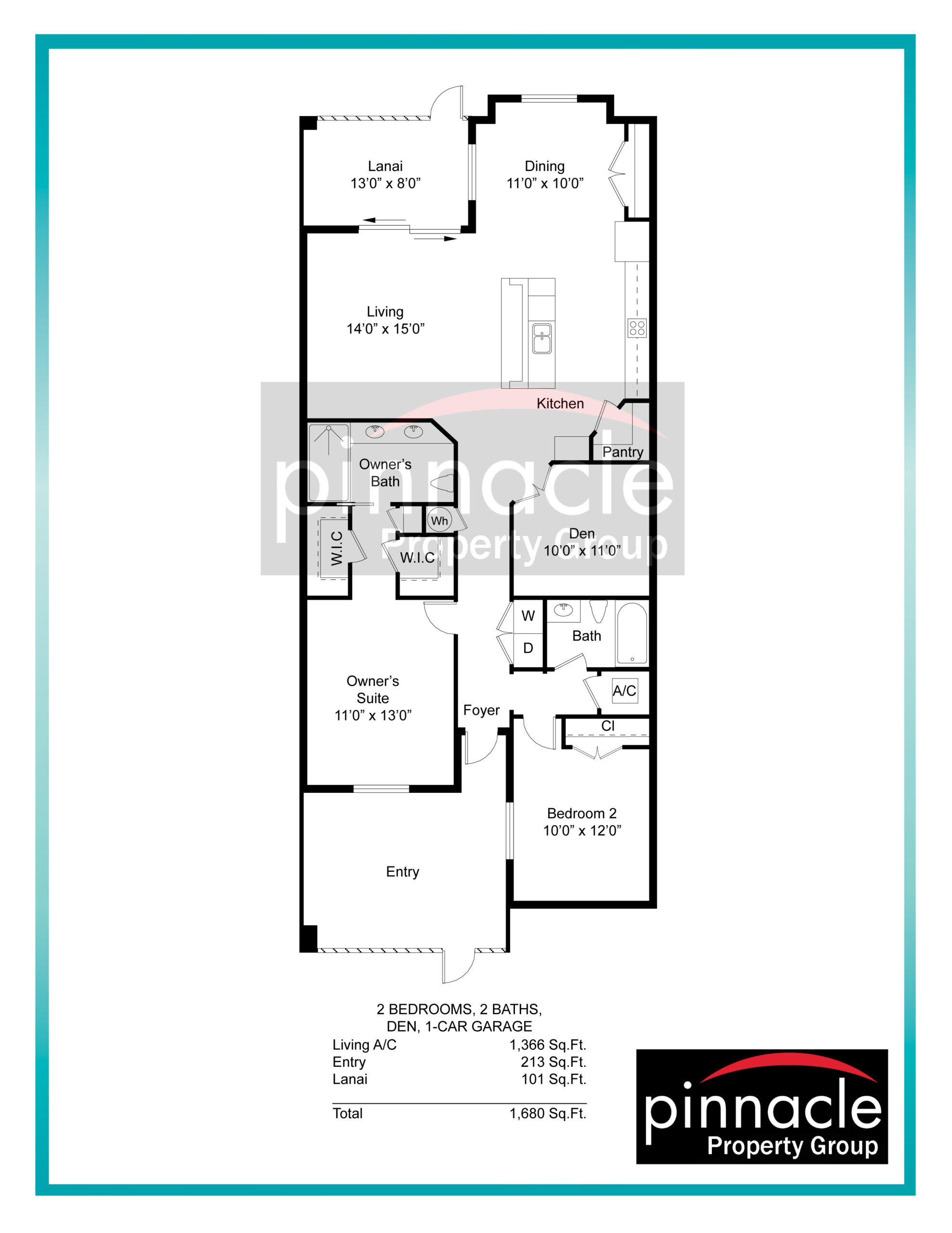 1,366 Sq. Ft. | 2 Bedrooms | 2 Baths | 1-Car Garage