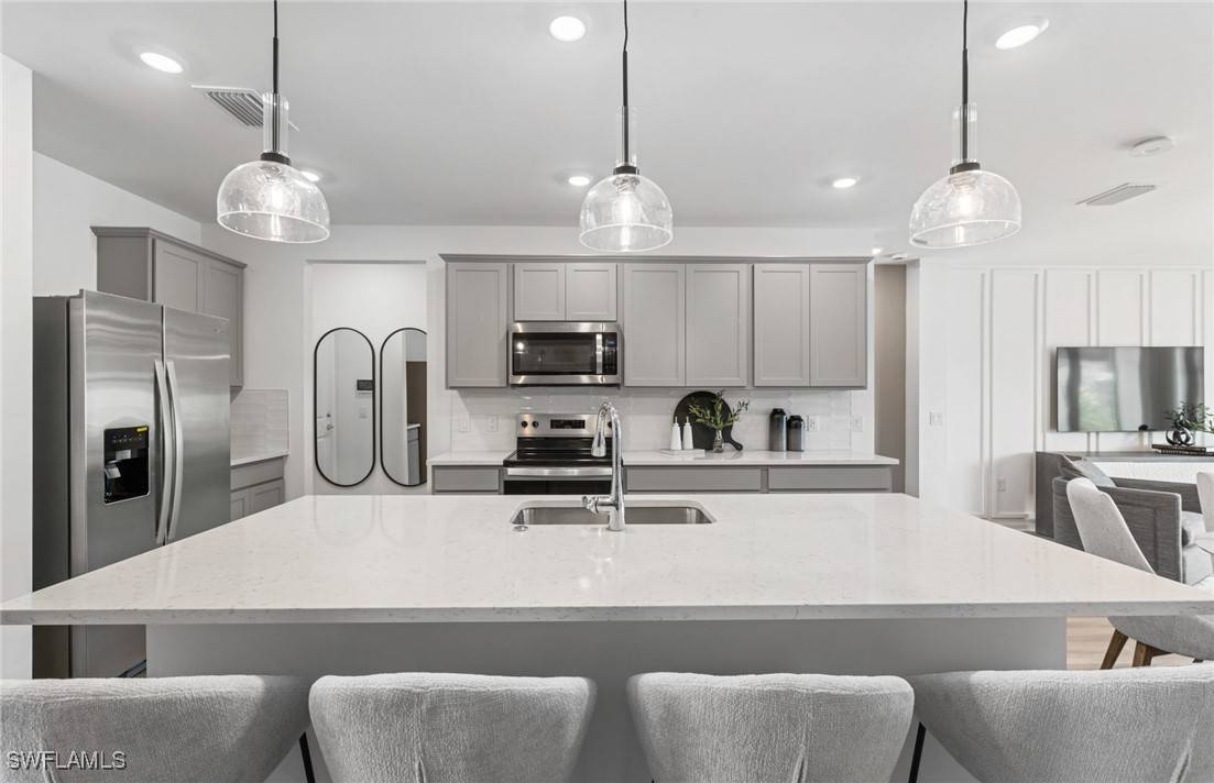 BRAND NEW CONSTRUCTION- This Alder floorplan features 3 bedrooms, 2.5 bathrooms, and a 1-car garage. Enjoy an open-concept main floor with 22x22 tile flooring, and flexible living spaces to suit a variety of lifestyles. The stylish kitchen boasts gray cabinetry, quartz countertops, and a full suite of Whirlpool appliances. Additional features include a smart home package and a tile roof, combining durability with modern comfort. Just 7 miles from the beach, Solis Grande offers the perfect blend of location and lifestyle with easy access to shopping, dining, and entertainment in the heart of Bonita Springs. Built by Pulte Homes, one of the nation's top new home builders, this thoughtfully designed community will feature 118 new construction townhomes—with no CDD fees and impact-resistant glass included. Experience low-maintenance living in a secure, gated community just minutes from Florida's Gulf Coast.
