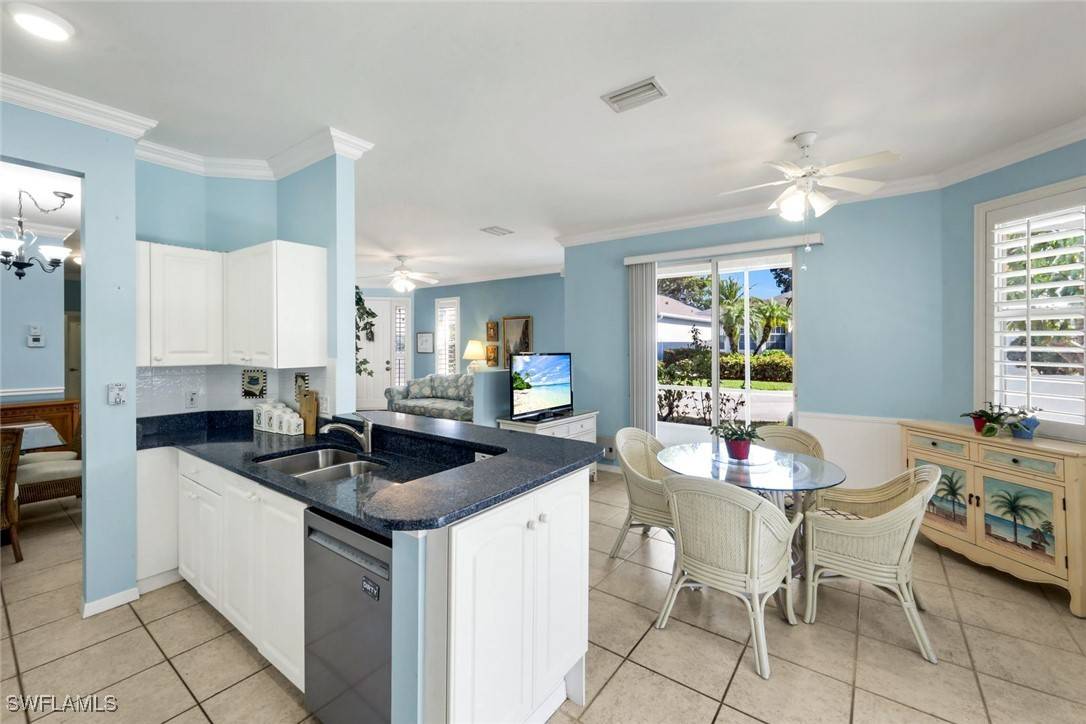 Easy-living villa home in the gated Villages of Bonita designed for buyers who want less maintenance and more sunshine-filled living space. The main living areas sit on the southern side of the home creating bright natural light throughout the day and an open comfortable feel. Tile runs throughout all of the main living areas and the home features a large screened lanai with a generous covered area that extends the living space year-round. The layout includes three bedrooms two baths and a two-car garage. In the villa section quarterly fees cover reserves for roof replacement on a scheduled cycle, exterior painting, lawncare, cable and common area maintenance offering condo-style ease without shared walls or upstairs neighbors. The community also includes planned guest parking areas which is a valuable everyday convenience plus amenities such as a clubhouse community swimming pool and tennis courts. Villages of Bonita is just minutes to Downtown Bonita Springs for festivals dining and entertainment with beaches approximately 15 to 20 minutes away Coconut Point about 10 minutes and RSW International Airport roughly 20 to 30 minutes.