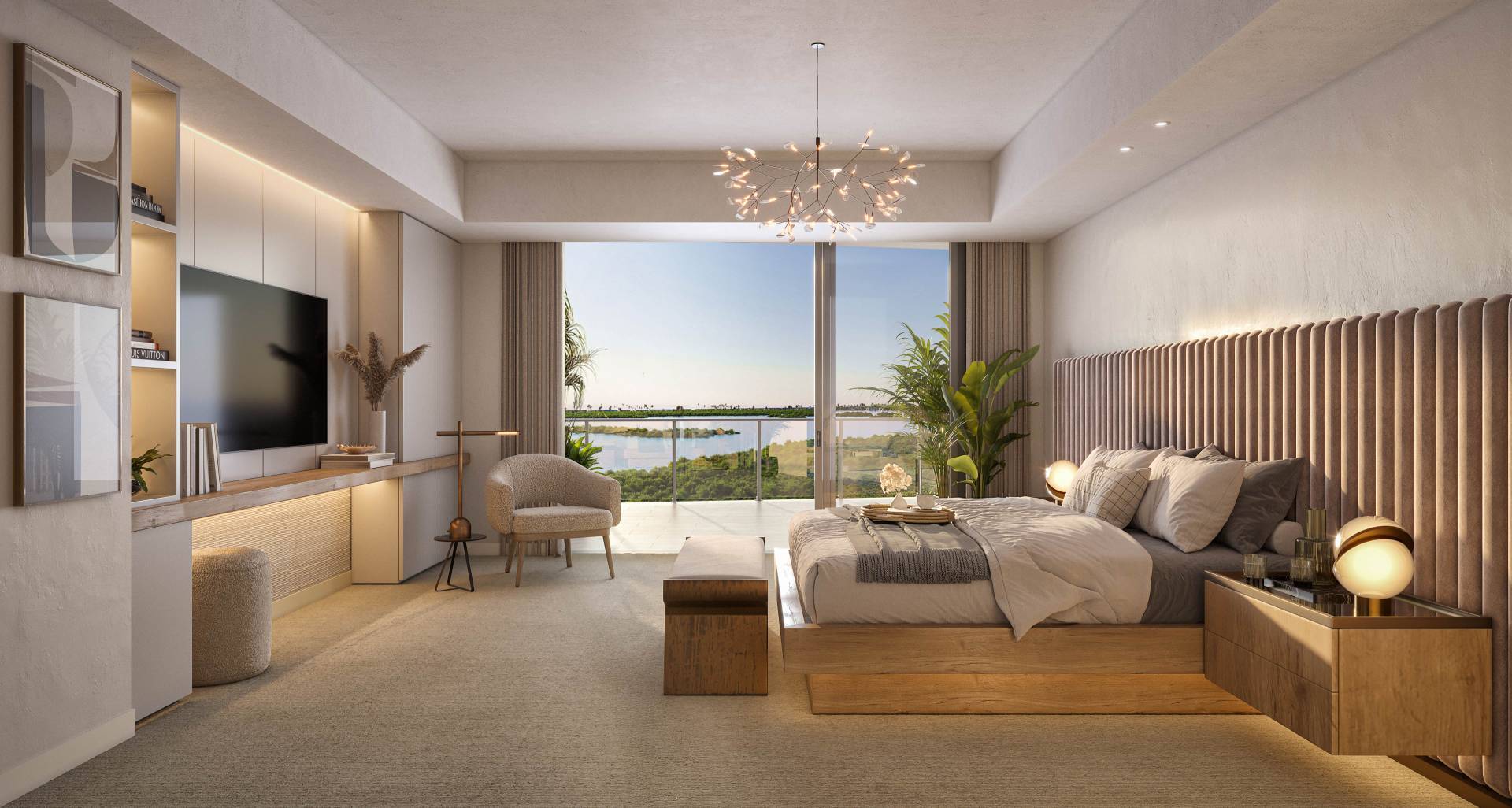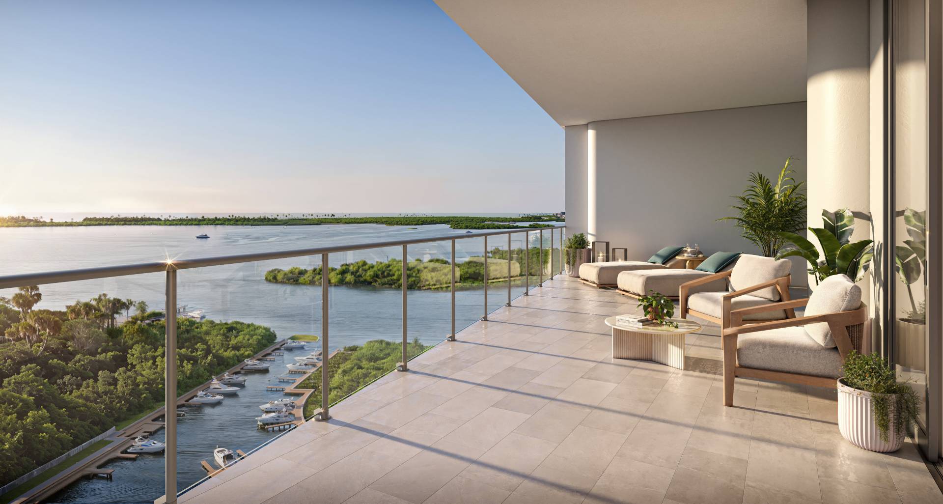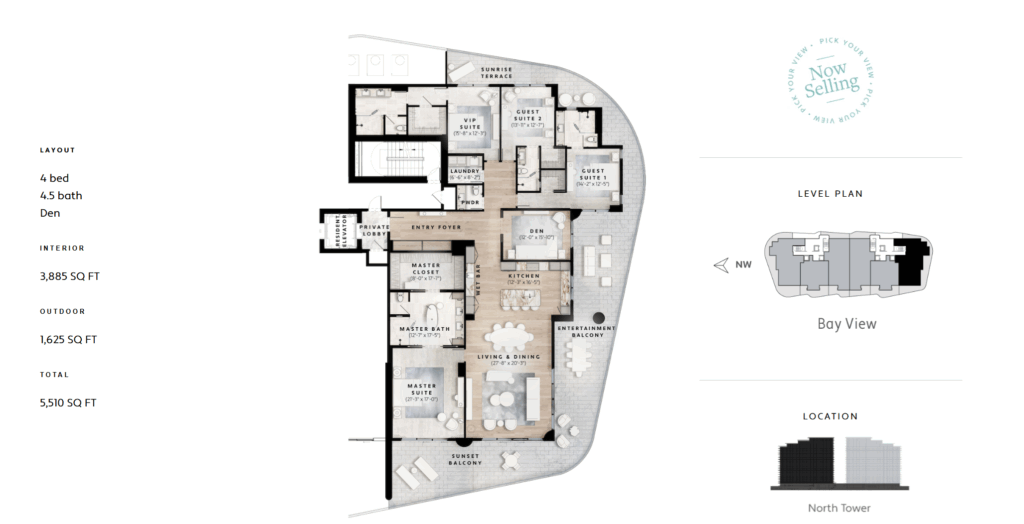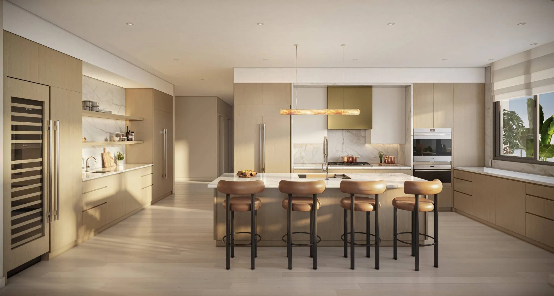 Think of it as theater in the round. From this residence’s wraparound balcony, you can watch the entire day unfold. Dramatic sunrise to sunset. Of course, with floor-to-ceiling windows you’ll catch those views from anywhere inside, too. Just be sure to grab a cocktail for the show from that long, tall drink of a wet bar. And some hors d’oeuvres from your oversized kitchen island.