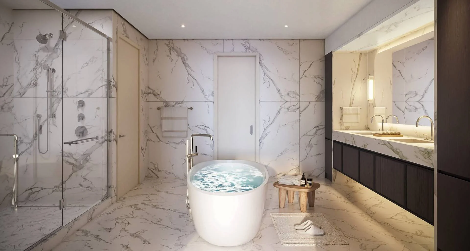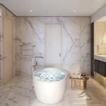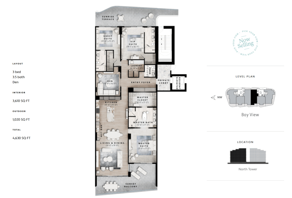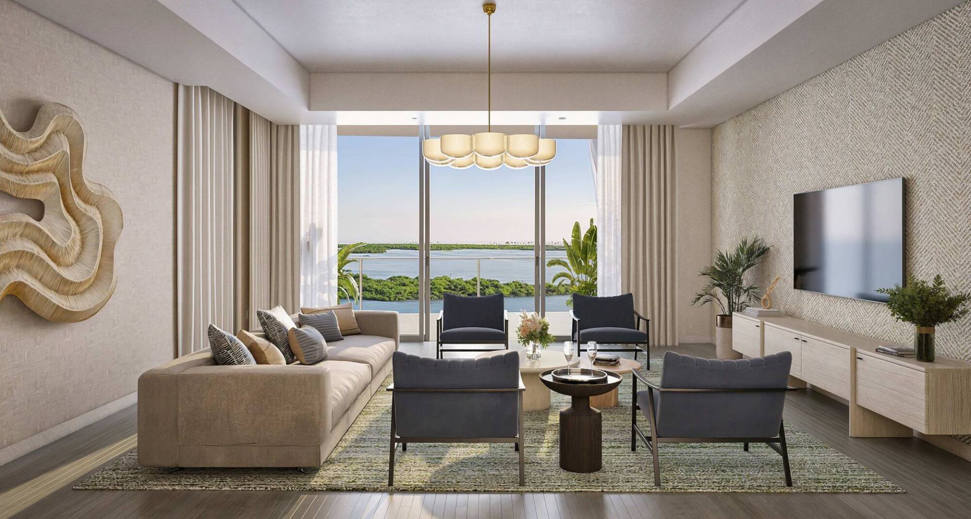 Here’s a dreamy guest scenario. You, in a spacious master suite that flows seamlessly onto a private bayside balcony. Your guests, thoughtfully situated in their own area of the home, with adjacent bedrooms and a private, east-facing terrace. Sunsets for you. Sunrises for them, happily entertained (with coffee and scones, perhaps, from the nearby chef’s kitchen) while you sleep late. Perfection.