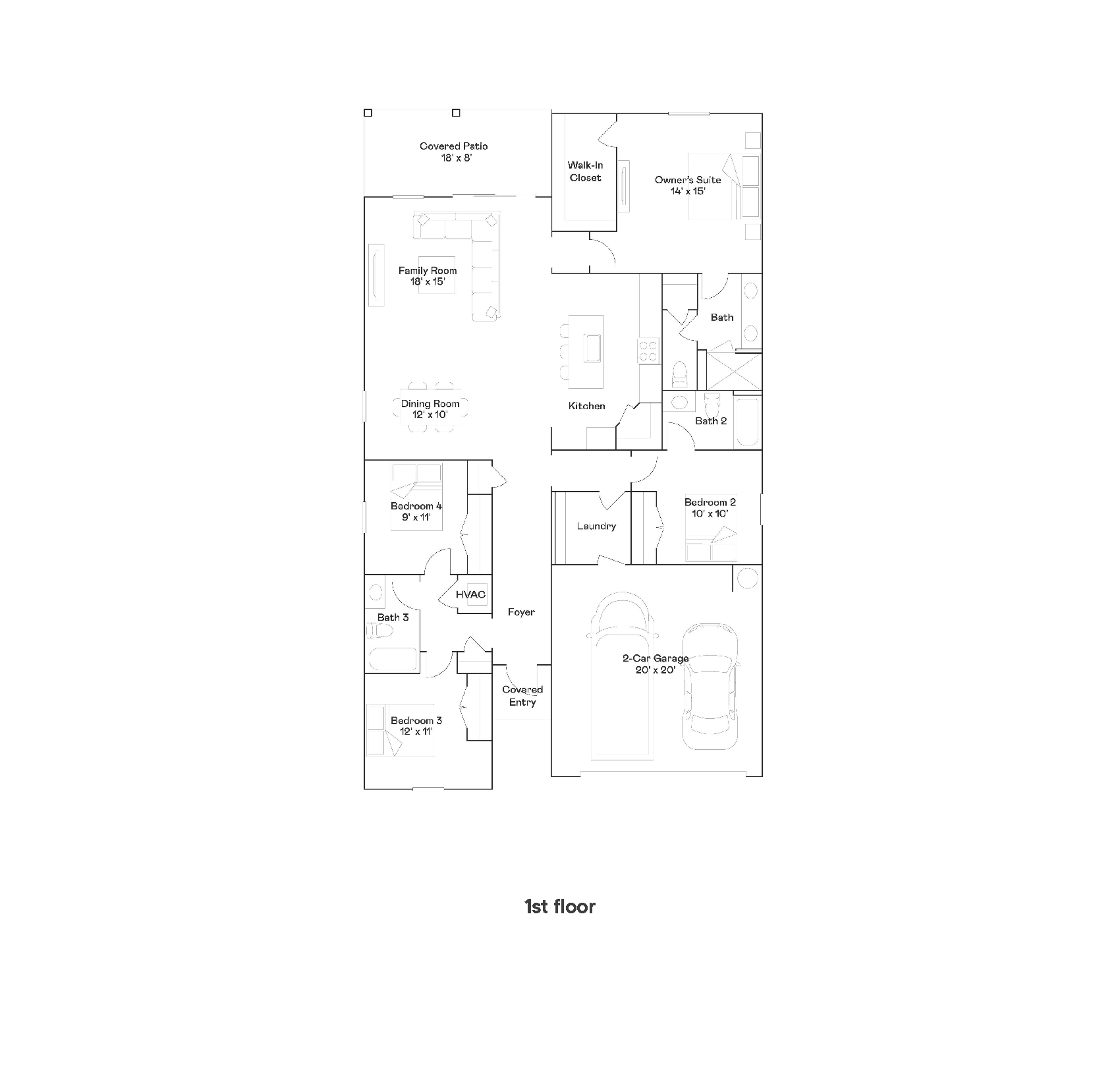 At the heart of the home, the sprawling open-concept living area brings the kitchen, dining, and family rooms together under one roof, extending naturally onto a breezy covered patio. Tucked away in the quiet rear corner, the owner’s suite provides a peaceful sanctuary complete with a spa-inspired private bath.